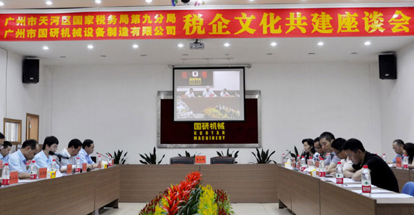 5月28日下午,廣州市天河國稅進出口稅收管理科、天河國稅第九分局和廣州市國研機械設備制造有限公司“稅企文化共建座談會”在國研機械大會議室隆重召開。天河國稅區(qū)局領(lǐng)導黃捷洪紀檢組長、賴建華總經(jīng)濟師和區(qū)局相關(guān)科室、進出口稅收管理科、九分局等領(lǐng)導出席了此次座談會。