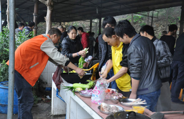 雖然天公不作美,細雨不停的飄,但是一點也沒有影響到我們活動的正常舉行。本次活動的主要內容包括“深山搜索”、野炊、團隊配合游戲等項目,活動中全體隊員不畏風雨嚴寒,克服各種困難,精彩的完成了各項活動。