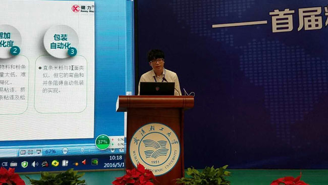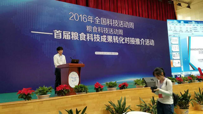 5月17~18日,在武漢輕工大學舉行的由國家糧食局、中國科協主辦的2016年全國糧食科技活動周上,我司研發的全自動直條米粉生產線被列為全國首屆糧食科技成果轉化對接推介重點項目。公司總經理助理王起在推介活動會上作了發言。